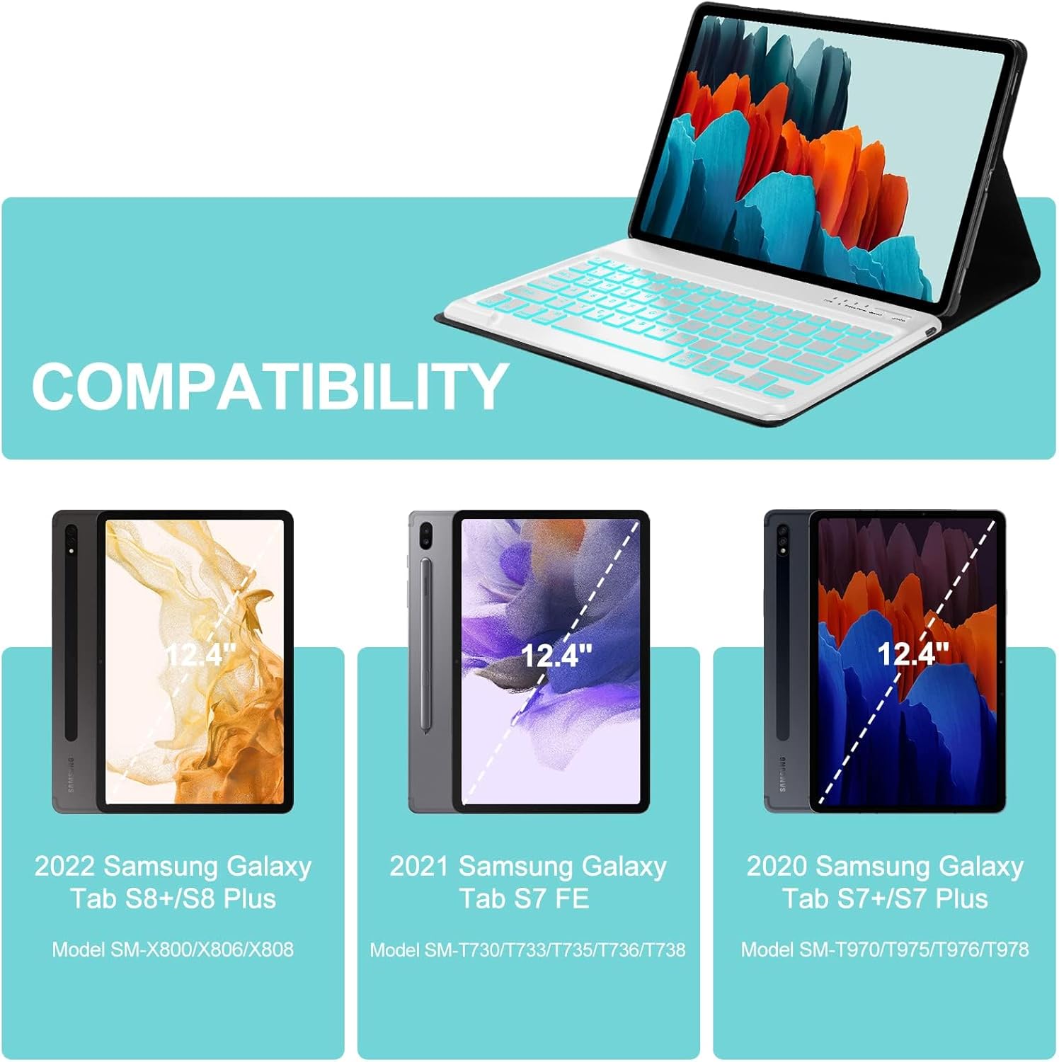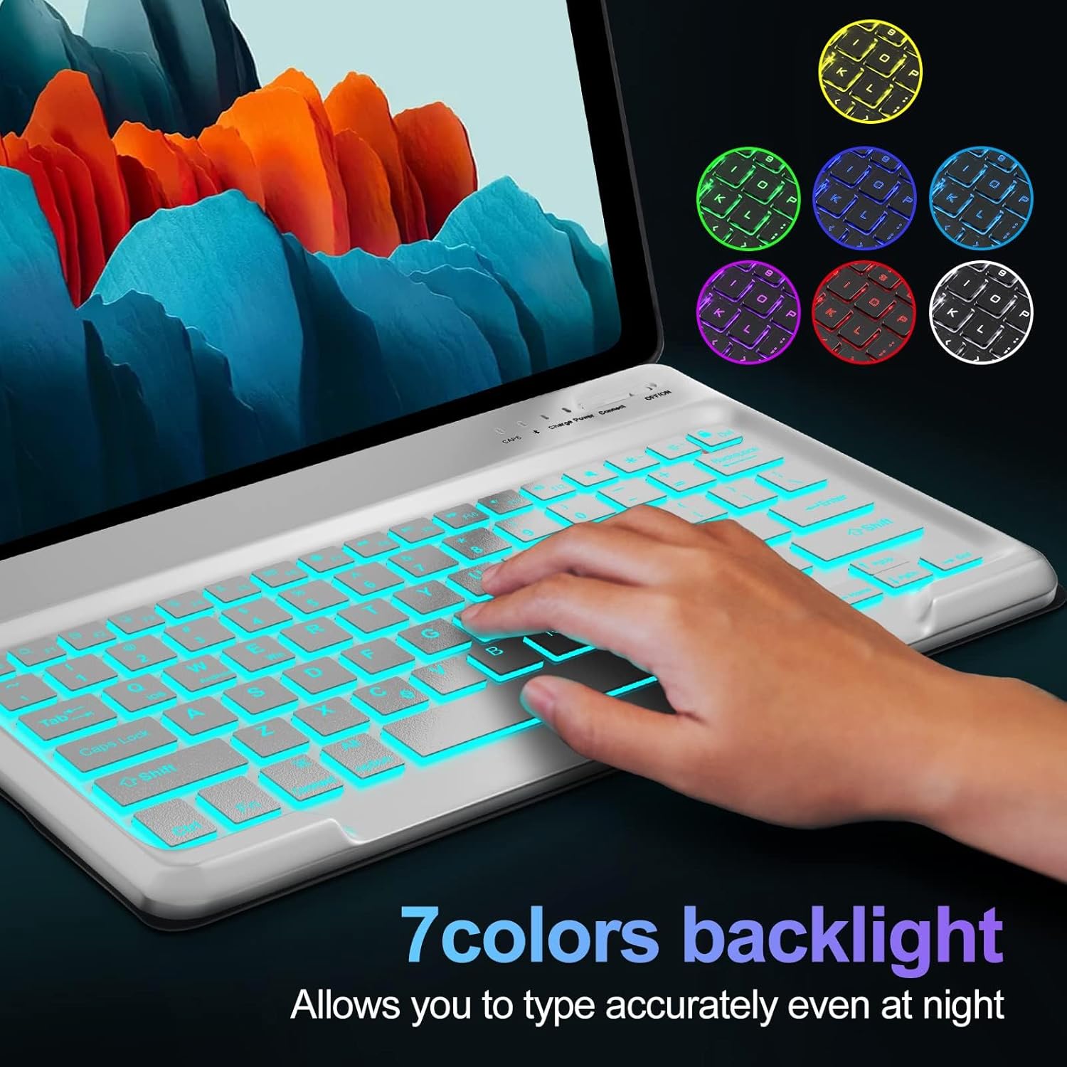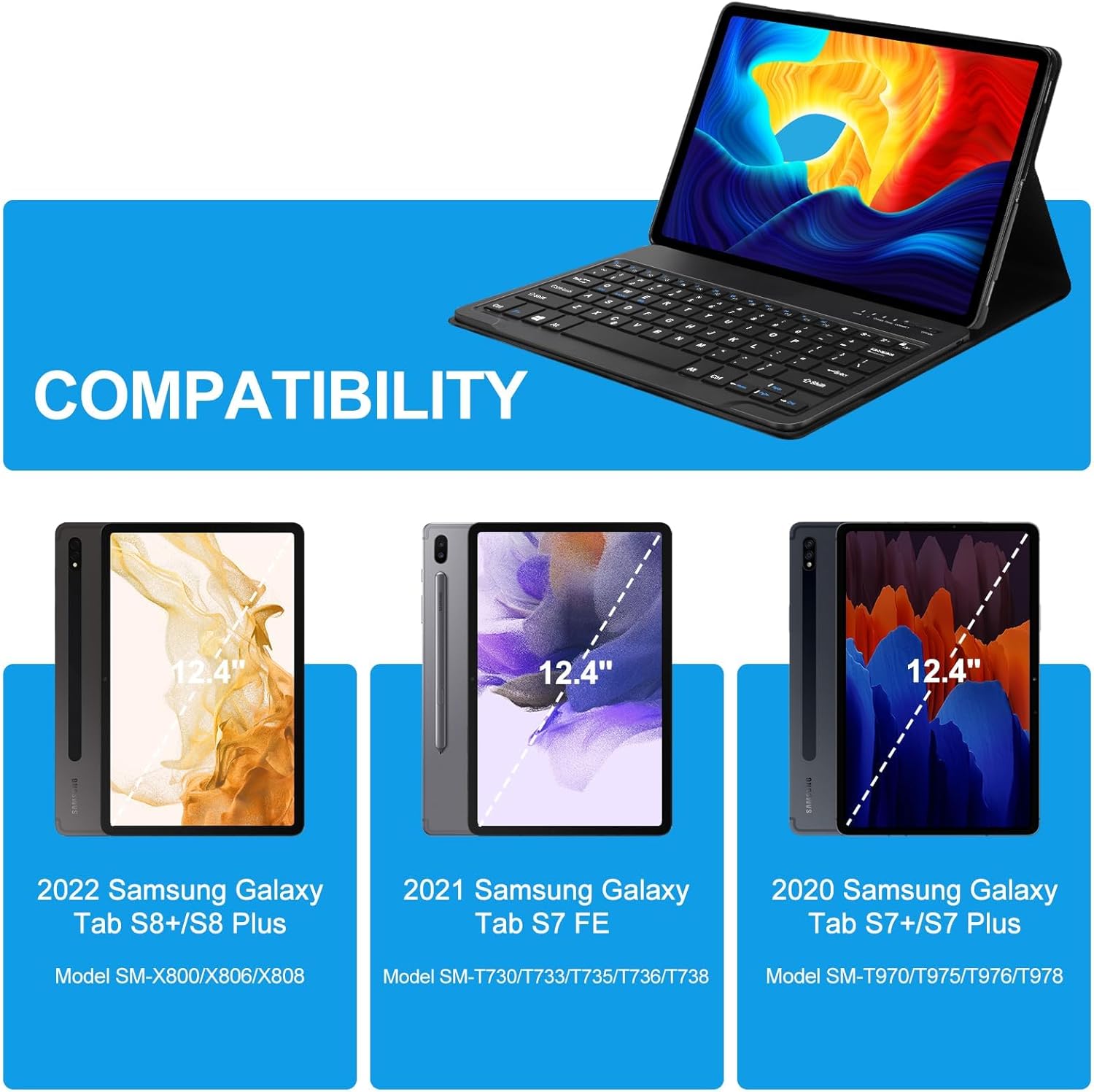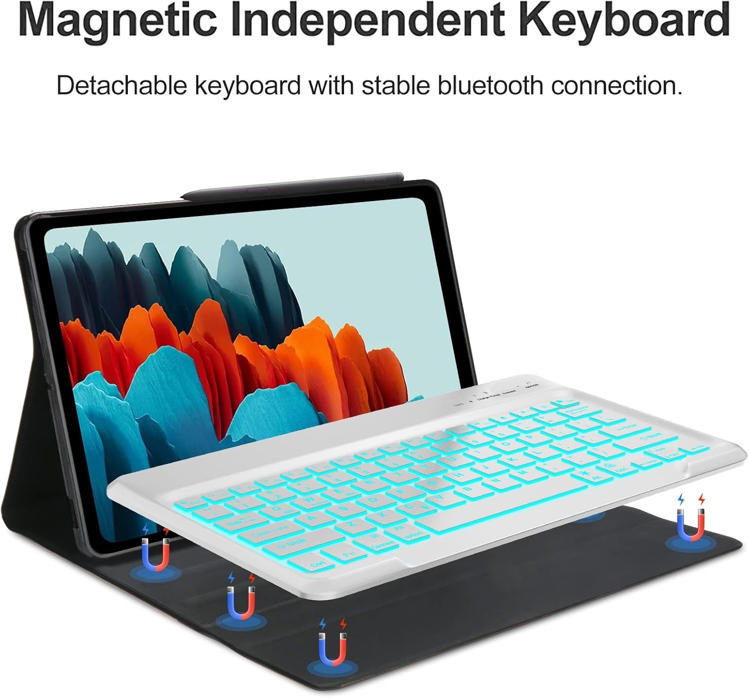 Galaxy Tab S6 Lite Case with Keyboard 10.4 inch 2024/2022/2020, 7 Color Backlit Bluetooth Detachable Keyboard, Smart Folio Protective Cover with S Pen Holder for Samsung Tablet S6 Lite 10.4'', SkyBlue