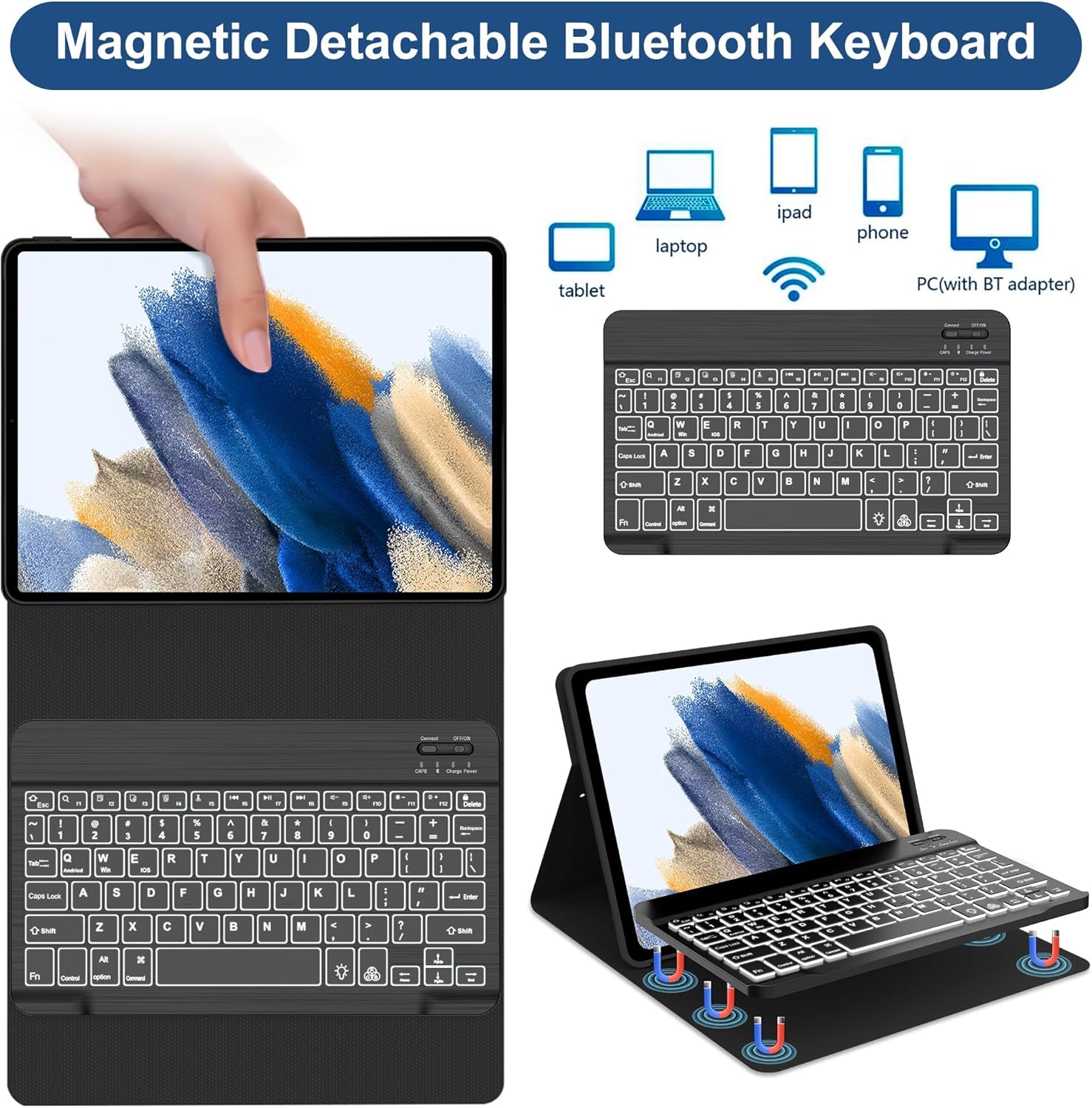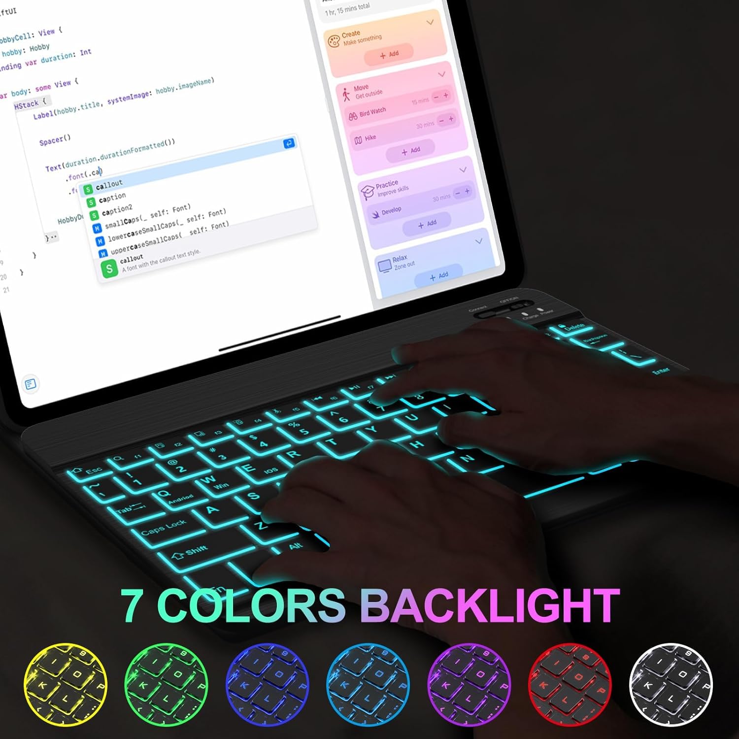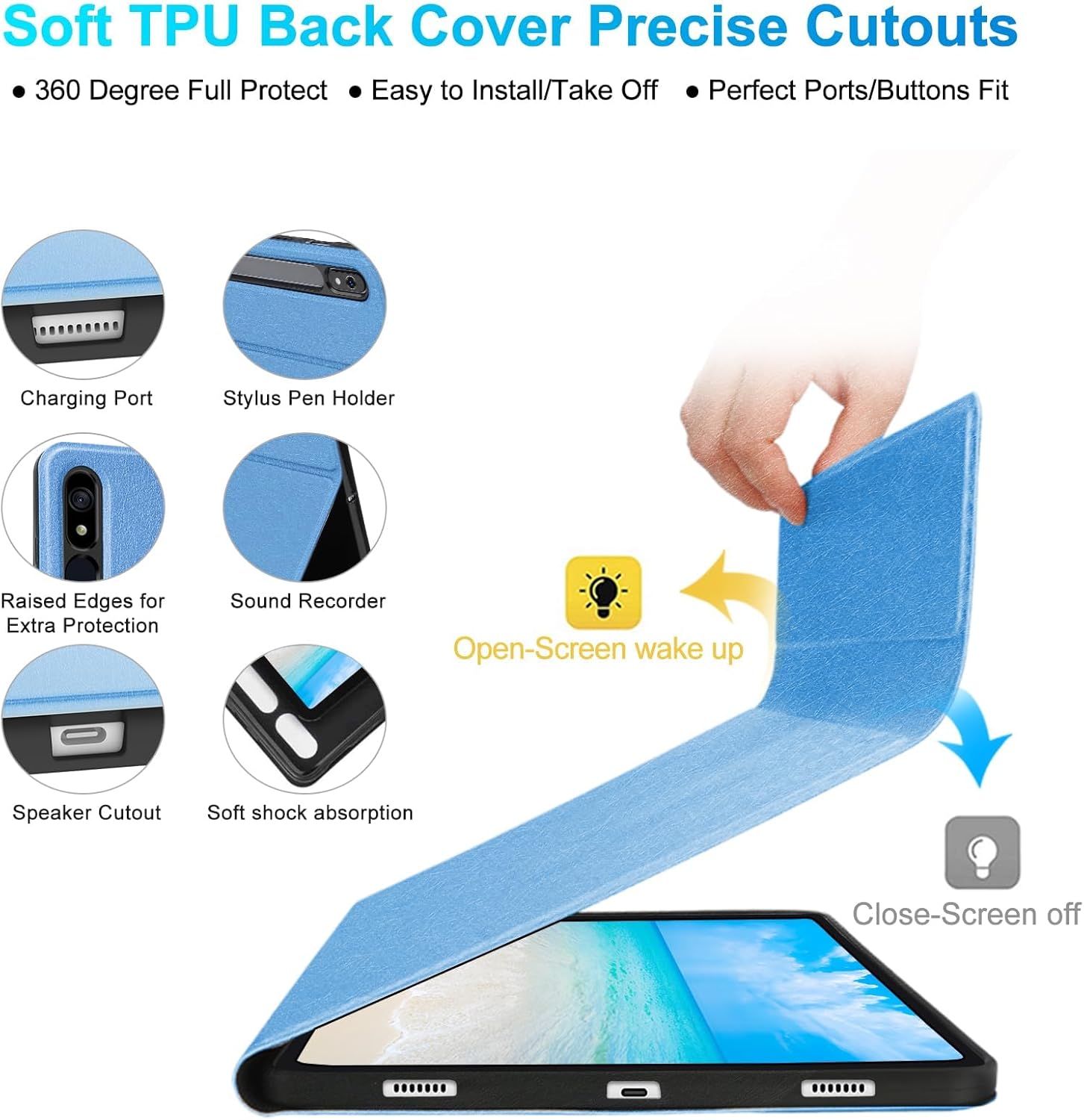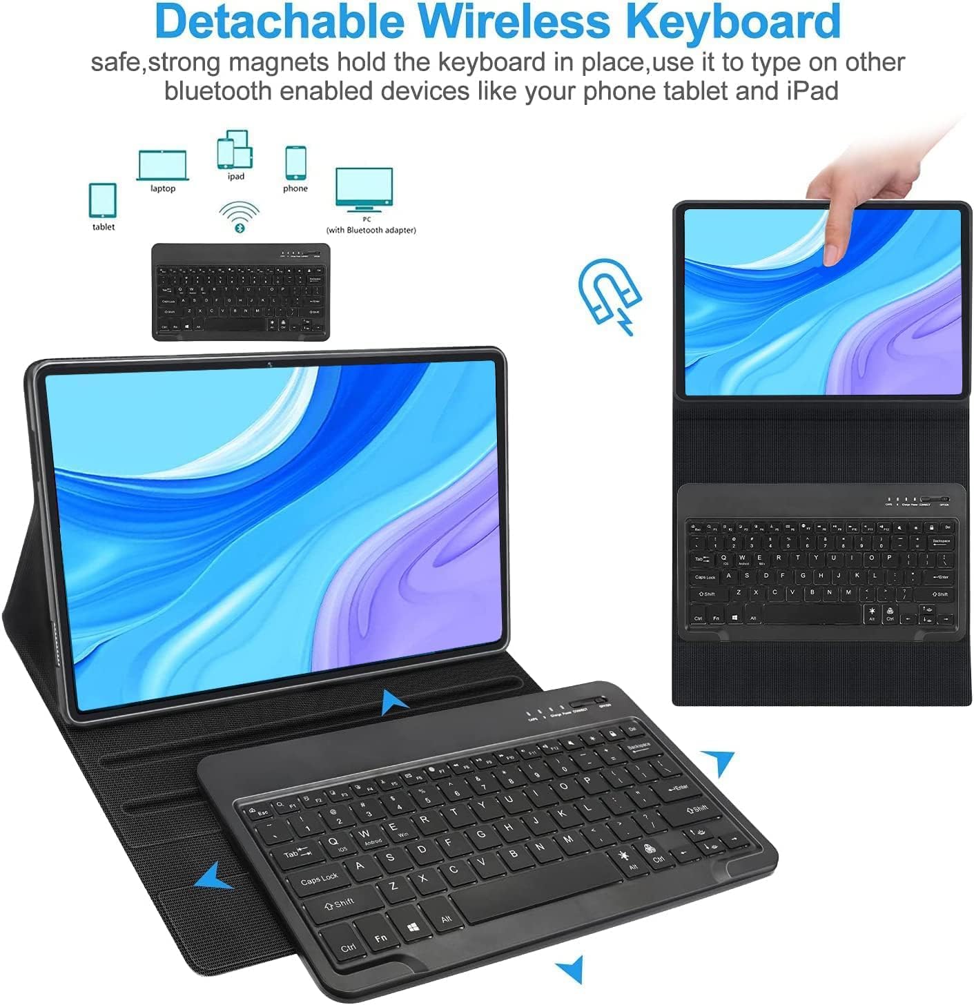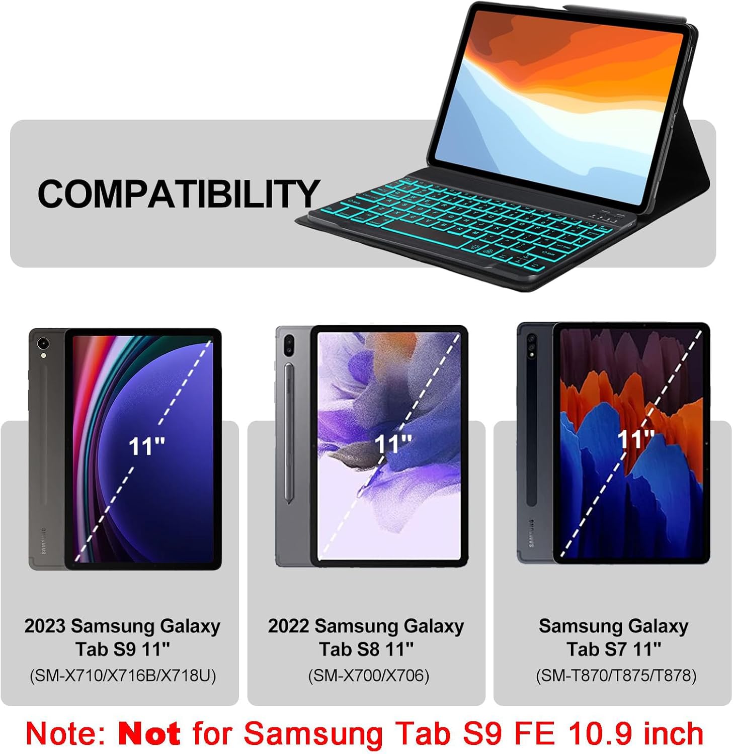 Galaxy Tab S6 Lite Case with Keyboard 10.4 inch 2024/2022/2020, 7 Color Backlit Bluetooth Detachable Keyboard, Smart Folio Protective Cover with S Pen Holder for Samsung Tablet S6 Lite 10.4'', SkyBlue
