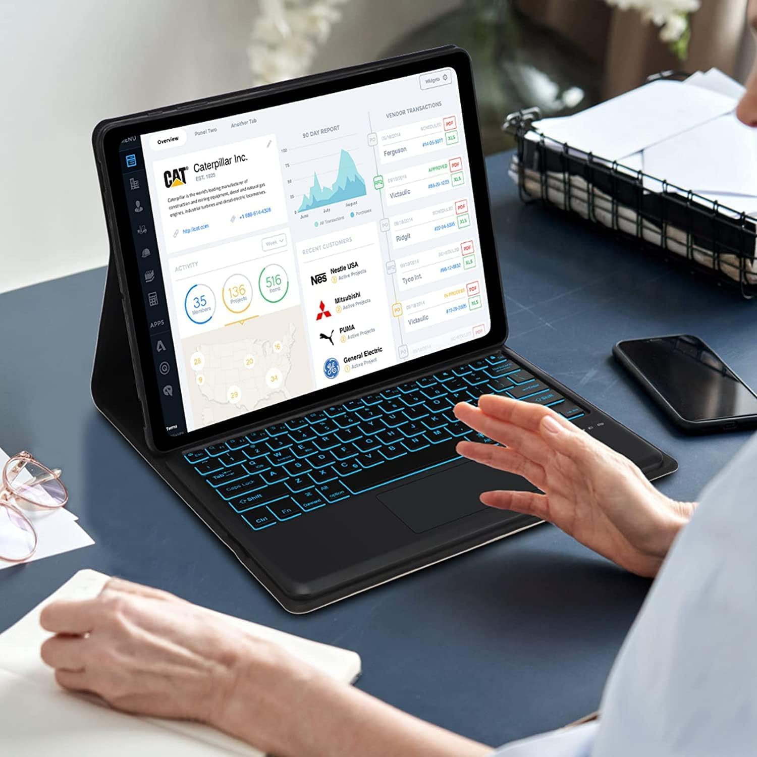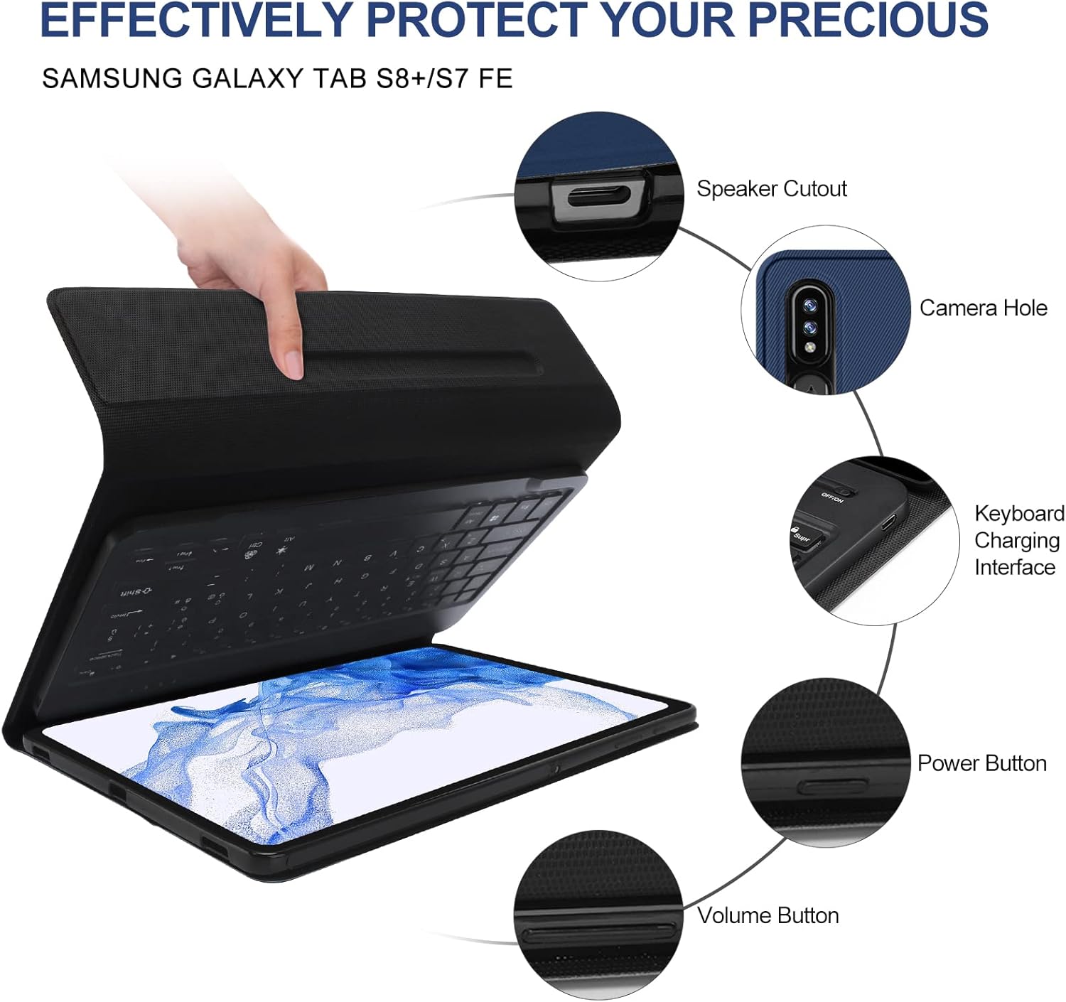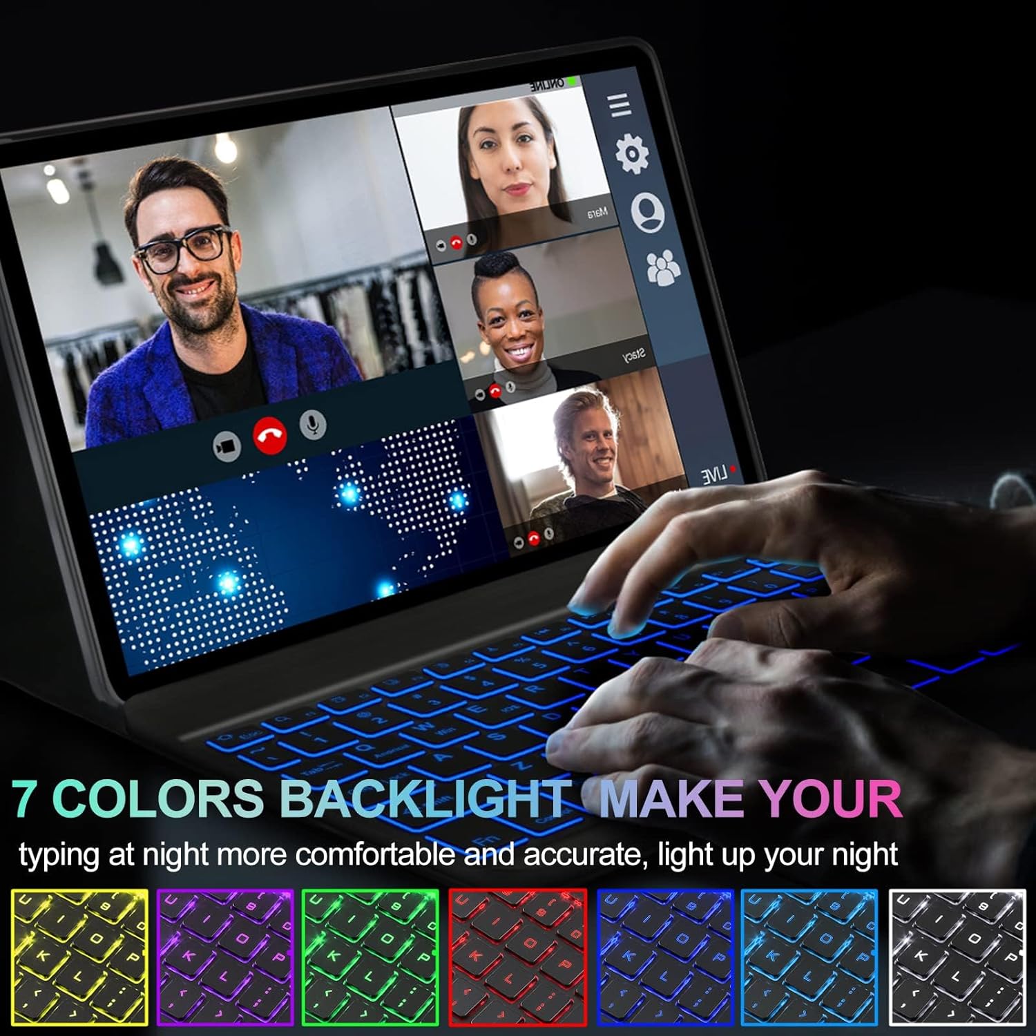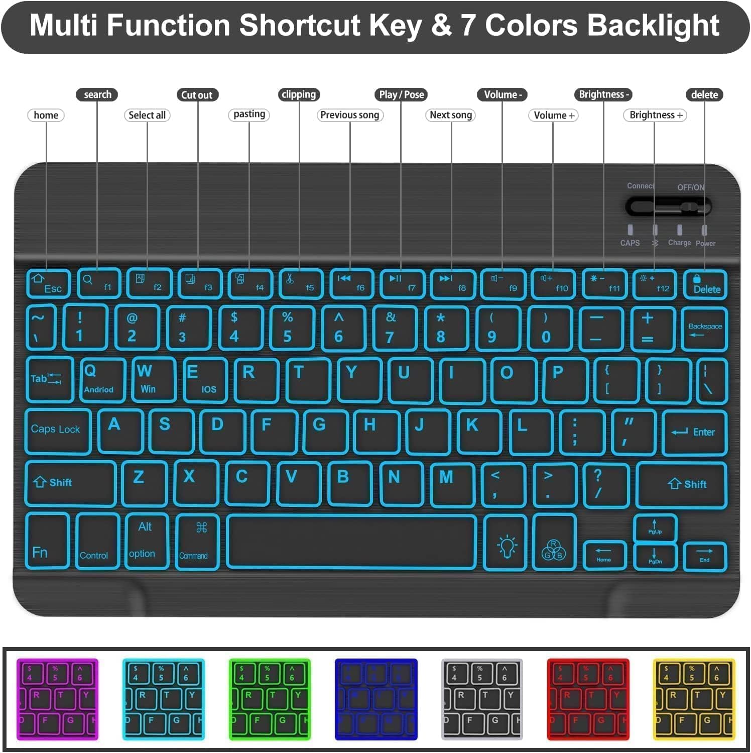 Galaxy Tab S6 Lite Case with Keyboard 10.4 inch 2024/2022/2020, 7 Color Backlit Bluetooth Detachable Keyboard, Smart Folio Protective Cover with S Pen Holder for Samsung Tablet S6 Lite 10.4'', SkyBlue
