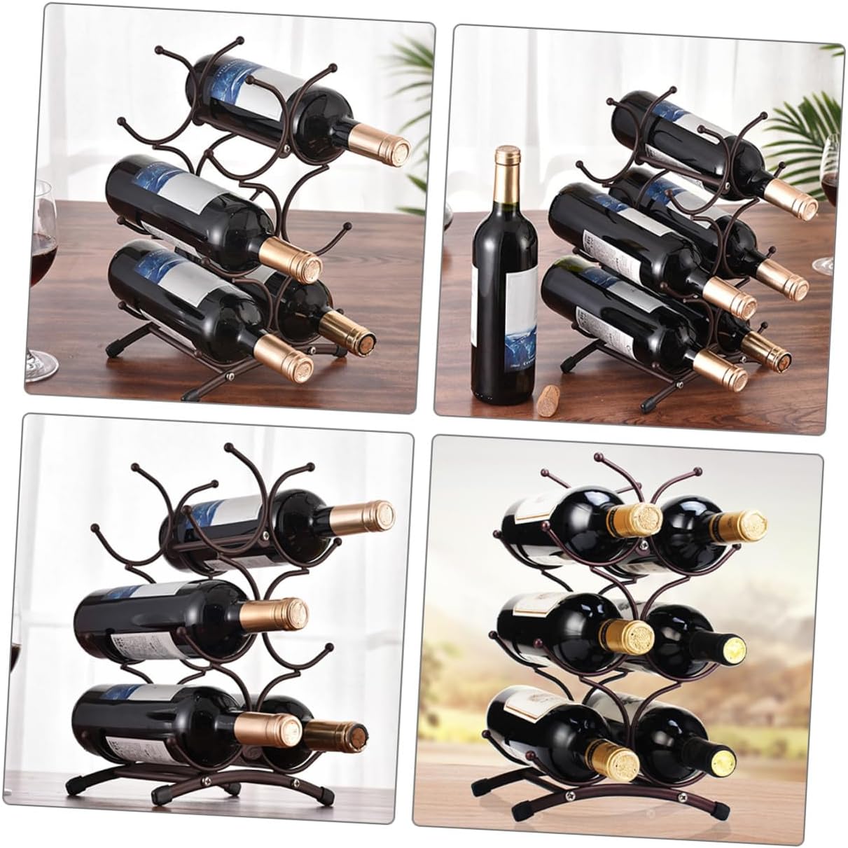 Package Include 1 x Wine Rack Characteristics - Material:Iron -Product Info:Red wine rack - Size: 35.50X23.00X16.00cm/13.95X9.04X6.29in - ColorDark Brown - This wine bottle holder is very suitable for homes, hotels, bars, restaurants, shops and other places iron wine bottle holder. - Detailed workmanship practicability and durability. You can use it with confidence storage rack retro. - This display stand is made of sturdy and stable iron material, sturdy and practical for longtime use. - Not only can it be used as a wine bottle display stand, this wine bottle holder is also a perfect home decoration counter wine rack. - It can be given as a to friends who like to collect red wine. They will like it very much wrought iron storage rack.Goods Descriptioniron wine holder This simple wine display rack is manufactured with wear-resistant iron material, sturdy and practical for lasting use.metal wine storage display shelf Tabletop wine bottle holder can display your wine more completely, and its creative and decorative shape also make it become a decoration for your home